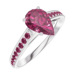 Inel Aur alb 9 carate - Rubin Pară 0.7 carate - Încrustare Rubin