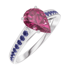 Inel Aur alb 9 carate - Rubin Pară 0.7 carate - Încrustare Safir albastru