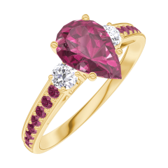Inel Aur galben 9 carate - Rubin Pară 0.7 carate - Pietre laterale Diamant - Încrustare Rubin