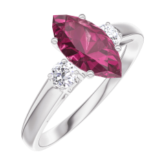 Inel Aur alb 18 carate - Rubin Marquise 0.7 carate - Pietre laterale Diamant