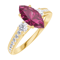 Inel Aur galben 9 carate - Rubin Marquise 0.7 carate - Pietre laterale Diamant - Încrustare Diamant