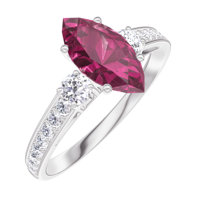 « L'ATELIER » Nº165927Inel Aur alb 18 carate - Rubin Marquise 0.7 carate - Pietre laterale Diamant - Încrustare Diamant