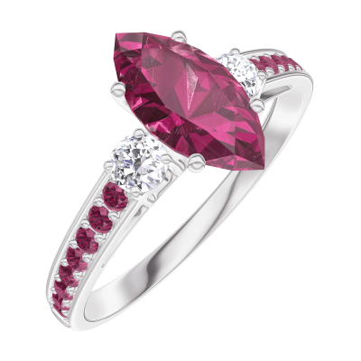 « L'ATELIER » NR. 165931Inel Aur alb 18 carate - Rubin Marquise 0.7 carate - Pietre laterale Diamant - Încrustare Rubin
