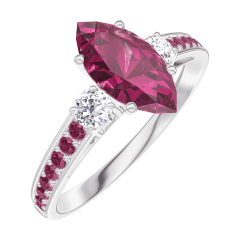 Inel Aur alb 9 carate - Rubin Marquise 0.7 carate - Pietre laterale Diamant - Încrustare Rubin