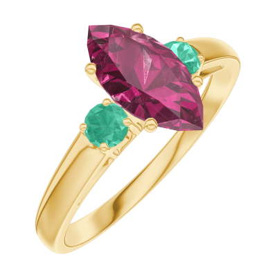 « L'ATELIER » NR. 165982Inel Aur galben 9 carate - Rubin Marquise 0.7 carate - Pietre laterale Smarald