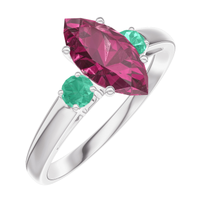 « L'ATELIER » NR. 165984Inel Aur alb 9 carate - Rubin Marquise 0.7 carate - Pietre laterale Smarald