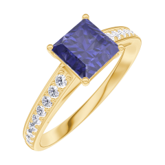 « L'ATELIER » NR. 166106Inel Aur galben 9 carate - Safir albastru Princess 0.7 carate - Încrustare Diamant