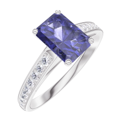 Inel Aur alb 18 carate - Safir albastru Smarald 0.7 carate - Încrustare Diamant
