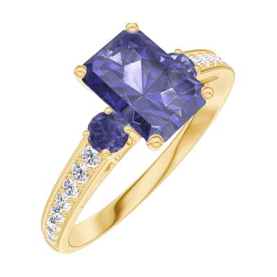 « L'ATELIER » NR. 166266Inel Aur galben 9 carate - Safir albastru Smarald 0.7 carate - Pietre laterale Safir albastru - Încrustare Diamant