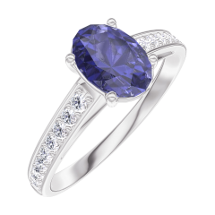 Inel Aur alb 18 carate - Safir albastru Oval 0.7 carate - Încrustare Diamant
