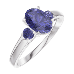 Inel Aur alb 9 carate - Safir albastru Oval 0.7 carate - Pietre laterale Safir albastru
