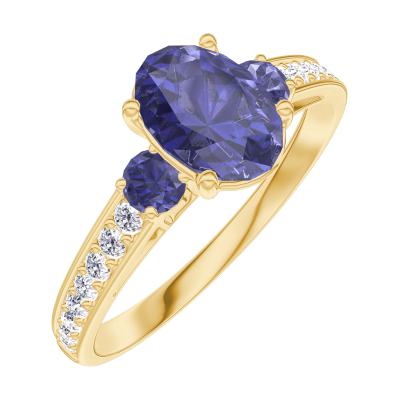 « L'ATELIER » NR. 166366Inel Aur galben 9 carate - Safir albastru Oval 0.7 carate - Pietre laterale Safir albastru - Încrustare Diamant