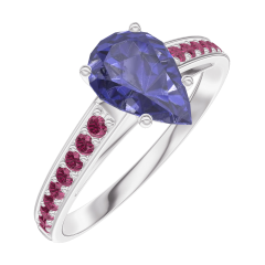 Inel Aur alb 18 carate - Safir albastru Pară 0.7 carate - Încrustare Rubin