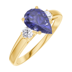 Inel Aur galben 18 carate - Safir albastru Pară 0.7 carate - Pietre laterale Diamant