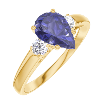« L'ATELIER » Nº166422Inel Aur galben 9 carate - Safir albastru Pară 0.7 carate - Pietre laterale Diamant