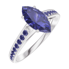 Inel Aur alb 9 carate - Safir albastru Marquise 0.7 carate - Încrustare Safir albastru