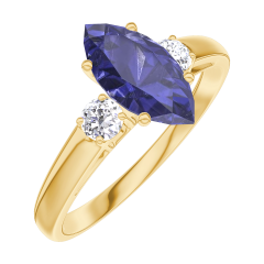 Inel Aur galben 9 carate - Safir albastru Marquise 0.7 carate - Pietre laterale Diamant