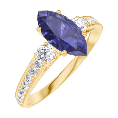 Inel Aur galben 18 carate - Safir albastru Marquise 0.7 carate - Pietre laterale Diamant - Încrustare Diamant