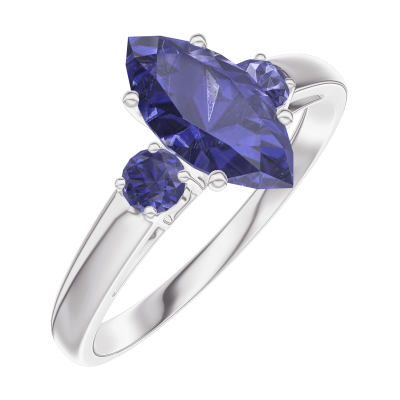 « L'ATELIER » NR. 166563Inel Aur alb 18 carate - Safir albastru Marquise 0.7 carate - Pietre laterale Safir albastru