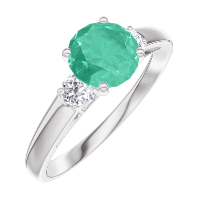 « L'ATELIER » NR. 166624Inel Aur alb 9 carate - Smarald rotund 0.7 carate - Pietre laterale Diamant 5