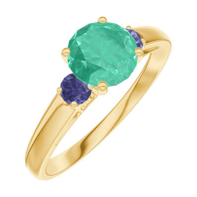 « L'ATELIER » NR. 166662Inel Aur galben 9 carate - Smarald rotund 0.7 carate - Pietre laterale Safir albastru 5
