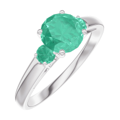 Inel Aur alb 9 carate - Smarald rotund 0.7 carate - Pietre laterale Smarald