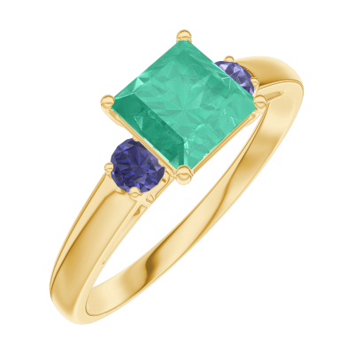 « L'ATELIER » NR. 166761Inel Aur galben 18 carate - Smarald Princess 0.7 carate - Pietre laterale Safir albastru
