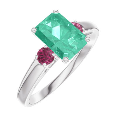 « L'ATELIER » NR. 166844Inel Aur alb 9 carate - Smarald Smarald 0.7 carate - Pietre laterale Rubin
