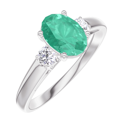« L'ATELIER » NR. 166923Inel Aur alb 18 carate - Smarald Oval 0.7 carate - Pietre laterale Diamant