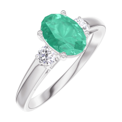 Inel Aur alb 18 carate - Smarald Oval 0.7 carate - Pietre laterale Diamant