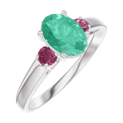 « L'ATELIER » NR. 166944Inel Aur alb 9 carate - Smarald Oval 0.7 carate - Pietre laterale Rubin