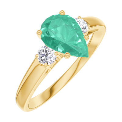 « L'ATELIER » NR. 167022Inel Aur galben 9 carate - Smarald Pară 0.7 carate - Pietre laterale Diamant