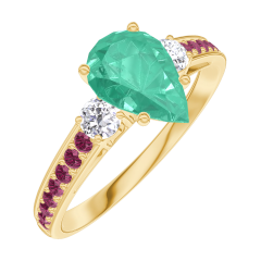 Inel Aur galben 18 carate - Smarald Pară 0.7 carate - Pietre laterale Diamant - Încrustare Rubin