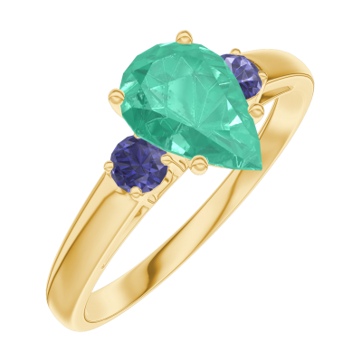 « L'ATELIER » NR. 167062Inel Aur galben 9 carate - Smarald Pară 0.7 carate - Pietre laterale Safir albastru