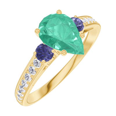 « L'ATELIER » NR. 167065Inel Aur galben 18 carate - Smarald Pară 0.7 carate - Pietre laterale Safir albastru - Încrustare Diamant