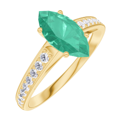 Inel Aur galben 18 carate - Smarald Marquise 0.7 carate - Încrustare Diamant