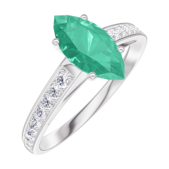 Inel Aur alb 18 carate - Smarald Marquise 0.7 carate - Încrustare Diamant