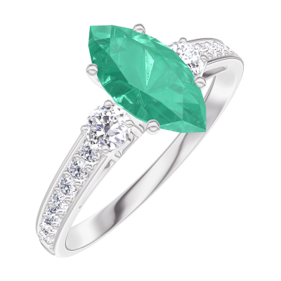 « L'ATELIER » NR. 167127Inel Aur alb 18 carate - Smarald Marquise 0.7 carate - Pietre laterale Diamant - Încrustare Diamant