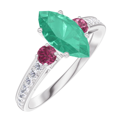 « L'ATELIER » NR. 167147Inel Aur alb 18 carate - Smarald Marquise 0.7 carate - Pietre laterale Rubin - Încrustare Diamant