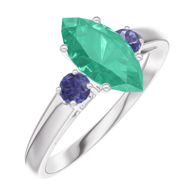 « L'ATELIER » NR. 167163Inel Aur alb 18 carate - Smarald Marquise 0.7 carate - Pietre laterale Safir albastru