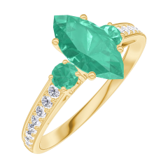 Inel Aur galben 9 carate - Smarald Marquise 0.7 carate - Pietre laterale Smarald - Încrustare Diamant