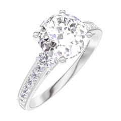 Inel Aur alb 18 carate - Diamant rotund 1 carate - Pietre laterale Diamant - Încrustare Diamant