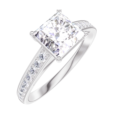 « L'ATELIER » NR. 167308Inel Aur alb 9 carate - Diamant Princess 1 carate - Încrustare Diamant