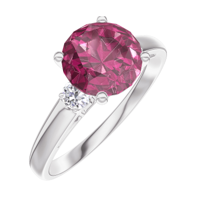 « L'ATELIER » NR. 167824Inel Aur alb 9 carate - Rubin rotund 1 carate - Pietre laterale Diamant 4.9