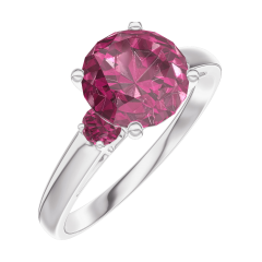 Inel Aur alb 18 carate - Rubin rotund 1 carate - Pietre laterale Rubin