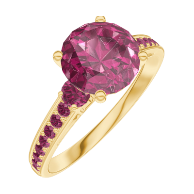 « L'ATELIER » NR. 167849Inel Aur galben 18 carate - Rubin rotund 1 carate - Pietre laterale Rubin - Încrustare Rubin 4.9