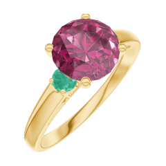 Inel Aur galben 9 carate - Rubin rotund 1 carate - Pietre laterale Smarald