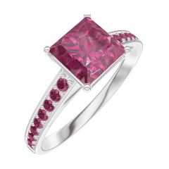 Inel Aur alb 9 carate - Rubin Princess 1 carate - Încrustare Rubin
