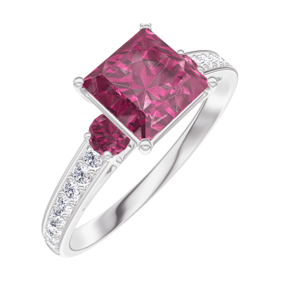 « L'ATELIER » NR. 167948Inel Aur alb 9 carate - Rubin Princess 1 carate - Pietre laterale Rubin - Încrustare Diamant