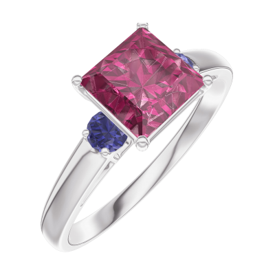 « L'ATELIER » NR. 167964Inel Aur alb 9 carate - Rubin Princess 1 carate - Pietre laterale Safir albastru